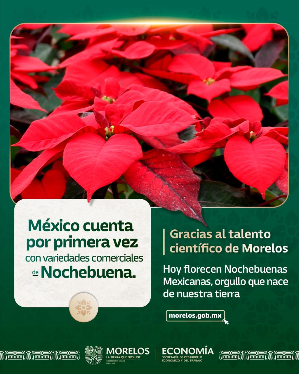 Cuernavaca, Morelos.— La Secretaría de Desarrollo Económico y del Trabajo de Morelos, lanzó una campaña de promoción para destacar el valor científico, productivo y cultural de la Nochebuena, una de las plantas más emblemáticas de México, desarrollada hoy con talento y conocimiento generado en Morelos.